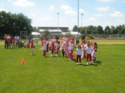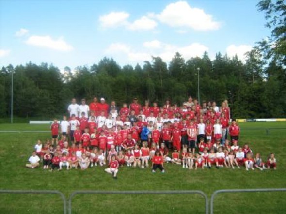 Wer sich am 13. und 14 Juli am Sportzentrum in Matzenbach aufgehalten hat, war von lauter Aktivität in Weiss und Rot überwältigt. Fußballer in weiss-roten Trikots, gefolgt von Mädchen ebenso in weiss-roter Kleidung, egal ob Baby oder 70jähriger, dazu alle Betreuer und massenhaft Besucher. Fahnen und Fähnchen flatterten bei bestem Sommerwetter dazu im Wind. An allen Ecken und Enden war etwas geboten: Fußball bis zum Abwinken, Sport mit Karatekas, Turnern und Tänzerinnen in der Turnhalle, Einblicke und Vitaldrinks durch unser Turnerfrauen am eigenen Infostand. Dazu wehten leckere Düfte vom oberen Sportplatz bis in die Turnhalle, wo Kuchen und Torten hungrige Gäste verwöhnten.