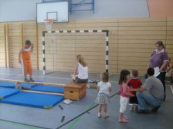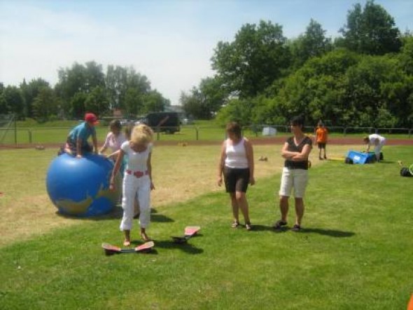 Am Sonntag war das Spielmobil der Renner und schon von weitem sah man Kinder mit Riesenbällen hantieren, verrückte Spielgeräte ausprobieren oder Geschicklichkeit trainieren. Auch den Kinderturntest in Zusammenarbeit mit der Barmer absolvierten 50 Kinder erfolgreich und konnten eine Urkunde mit nach Hause nehmen.